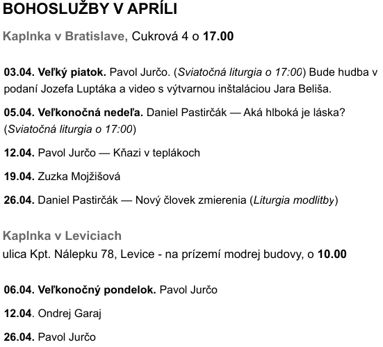Novinky z Kaplnky na apríl 2026 nájdete tu: Novinky z Kaplnky